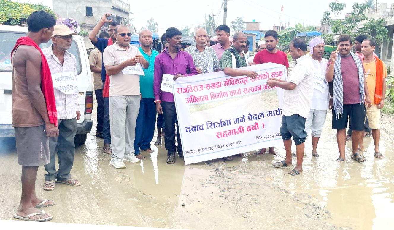 राजविराज, २६ साउन । राजविराज–सखडा–गोविन्दपुर सड़क निर्माण कार्य अविलम्ब सम्पन्न करबाक माग करैत सोम दिन सखडासँ पैदल यात्रा निकालल गेल अइछ ।